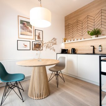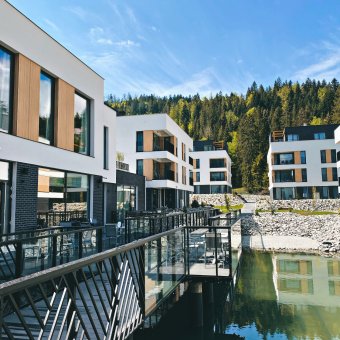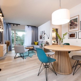 Prostor, světlo a funkčnost - to jsou tři nejdůležitější vlastnosti našich bytů. Prostor vyplývá z plochy, která se pohybuje od 33 do 60 m2. Světlo zajišťují velká okna a prosklené terasy s výhledem na lesy u Wisly. Postarali jsme se o funkčnost a do každého bytu jsme přidali kuchyňský kout s jídelnou. Pohodlí hostů je pro nás nejdůležitější.