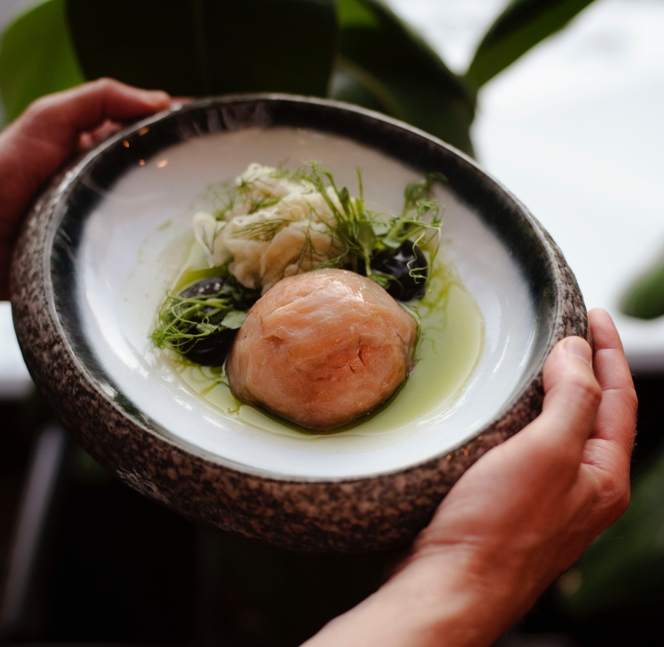 Shiitake | Grapefruit-Gel | Pak-Choi-Salat | Sepia-Mayonnaise | Sesam | Teriyaki