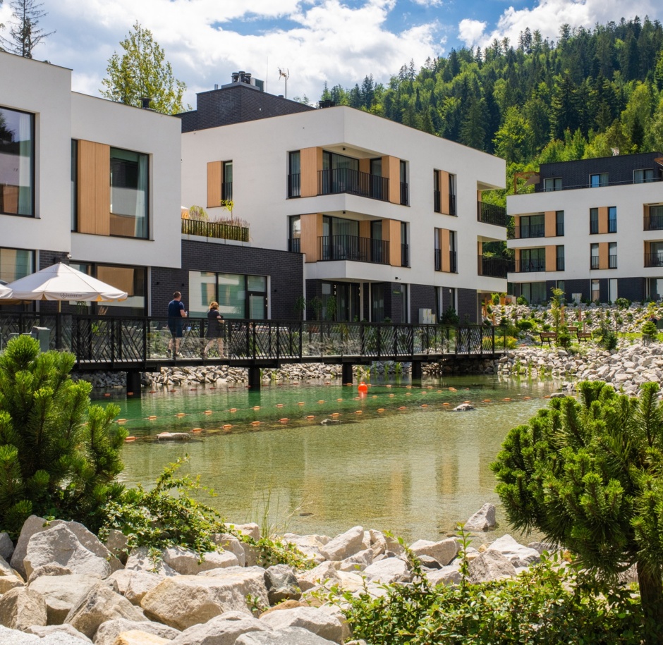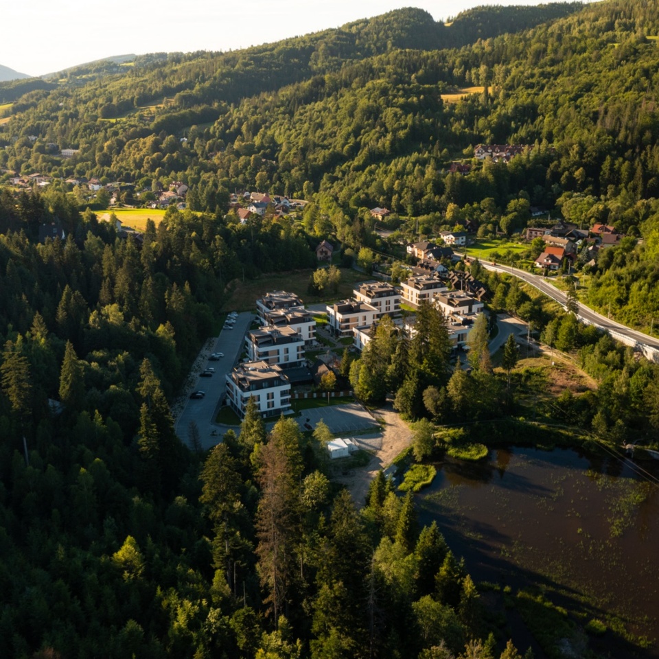 VISLOW Resort to nowo powstała przestrzeń do wypoczynku w Wiśle Czarne. 9 wolnostojących budynków tworzy resort ze 125 apartamentami o wysokim standardzie, restauracją, kawiarnią oraz SPA. Z racji położenia VISLOW w sercu Beskidu Śląskiego naszym nadrzędnym celem było połączenie resortu z otaczającą przyrodą. Symbolem udanej harmonii jest zachowanie naturalnego stawu oraz widok na okalające VISLOW lasy z każdego apartamentu.